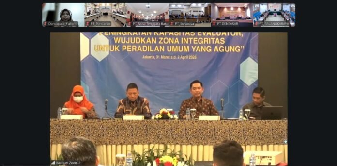 Jakarta ––INDOTIPIKOR.COM–FORSIMEMA RI— Dalam rangka mendorong peningkatan kualitas pelaksanaan evaluasi Pembangunan Zona Integritas (ZI) menuju Wilayah Bebas Korupsi (WBK) serta Wilayah Birokrasi Bersih dan Melayani (WBBM), Direktorat Jenderal Badan Peradilan Umum (Badilum) gelar bimbingan teknis (bimtek) secara daring yang diikuti Pimpinan Pengadilan Tinggi (PT) seluruh Indonesia, Rabu, 1 April 2026.
