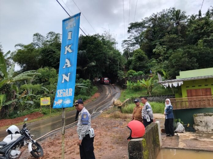 CIAMIS–INDOTIPIKOR.COM-MEDIA AWDI JABAR—-Cuaca ekstrem dengan intensitas hujan tinggi yang melanda wilayah Kabupaten Ciamis mengakibatkan tebing setinggi kurang lebih 7 meter longsor di Dusun Kaler RT 04/RW 05, Desa Karangampel, Kecamatan Baregbeg, Kabupaten Ciamis. Peristiwa tersebut terjadi pada Minggu (22/2/2026) sekitar pukul 16.00 WIB dan menyebabkan material lumpur menutupi setengah badan jalan kabupaten di jalur perbatasan Desa Karangampel, Kecamatan Baregbeg dengan Desa Salakarya, Kecamatan Sukadana.