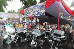 Di lokasi, motor-motor besar berjejer rapi, menciptakan kontras visual yang kuat dengan payung-payung warga yang berteduh dari hujan. Suasana tetap hidup. Anggota komunitas, aparat, dan masyarakat larut dalam interaksi hangat. Hujan tidak menjadi penghalang justru mempertegas makna bahwa kepedulian tak mengenal cuaca.
