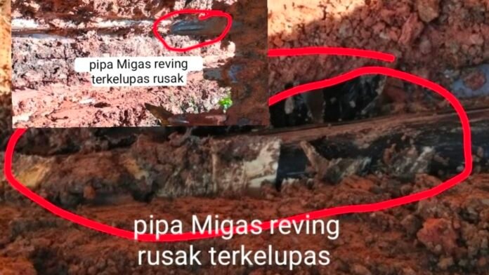 Adapun yang kami maksud berpotensi merugikan negara adalah karena pemasangan pipa fiber migas ini pergunakan alat berat excavator mini berpotensi kupas pipa migas yang sudah di reving ( dibalut pengaman) dan ini kami temukan saat penggalian tersebut paket excavator mini merusak pembalut reving pipa Migas hingga terkelupas dan ini untuk jangka panjang jika tidak diperbaiki akan menyebabkan pipa cepat korosi karena terkubur di dalam tanah,” nian itu ada pipa reving terkelupas dan kemungkinan sudah di tutup tanah,” sebut seseorang yang identitasnya engan disebutkan.