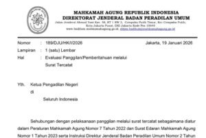 Jakarta —–INDOTIPIKOR.COM-MEDIA FORSIMEMA RI— Dalam upaya meningkatkan layanan peradilan khususnya terkait mekanisme pemanggilan dan pemberitahuan para pihak melalui surat tercatat, melalui surat tertanggal 19 Januari 2026, Direktur Jenderal Badan Peradilan Umum meminta kepada Ketua Pengadilan Negeri di seluruh Indonesia untuk menyampaikan data dan informasi terkait berbagai kendala atau permasalahan yang masih dihadapi dalam pelaksanaan pemanggilan melalui surat tercatat sepanjang Tahun 2025.