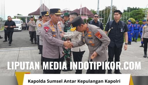 Palembang —–INDOTIPIKOR.COM-MEDIA LOYALIS KORPS POLRI— Kapolda Sumatera Selatan Sandi Nugroho mengantarkan kepulangan Kapolri Listyo Sigit Prabowo beserta rombongan di VIP Room Bandara Sultan Mahmud Badaruddin II, Minggu (8/3/2026) sekitar pukul 11.50 WIB.