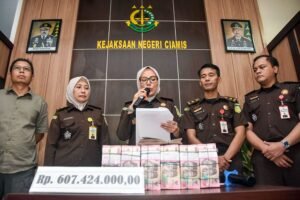 Dana sebesar Rp607.424.000 tersebut berasal dari pembayaran uang pengganti serta denda para terpidana dalam tiga perkara korupsi. Seluruhnya telah resmi disetorkan ke kas negara sebagai Penerimaan Negara Bukan Pajak (PNBP) dalam prosesi yang digelar di Kantor Kejari Ciamis, Senin (16/3/2026).