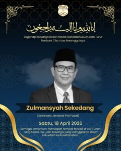 JAKARTA —INDOTIPIKOR.COM–MEDIA LOYALIS PWI—– Kabar duka menyelimuti dunia pers Indonesia. Sekretaris Jenderal Persatuan Wartawan Indonesia (PWI) Pusat, Zulmansyah Sekedang (54), mengembuskan napas terakhir pada Sabtu dini hari pukul 00.10 WIB di Rumah Sakit Budi Kemuliaan. Almarhum wafat akibat serangan jantung.