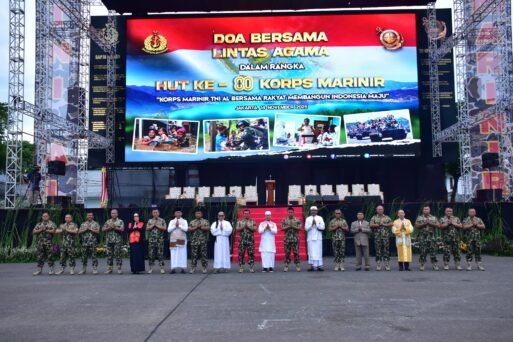 JAKARTA–INDOTIPIKOR.COM-MEDIA LOYALIS TNI—Dispen Kormar TNI Angkatan Laut (Jakarta). Dalam rangka memperingati Hari Ulang Tahun (HUT) ke-80 Korps Marinir TNI Angkatan Laut, Korps Marinir menggelar acara Doa Lintas Agama di Lapangan Apel Brigif 1 Marinir, Cilandak, Jakarta Selatan, Jum’at (14/11/2025). Acara ini merupakan bentuk syukur dan doa bersama untuk keselamatan, pertolongan, dan perlindungan serta keberhasilan tugas para Prajurit Korps Marinir di seluruh Indonesia.