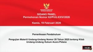 Mahkamah Konstitusi (MK) menggelar sidang perdana pengujian formil dan materiil terhadap Undang-Undang Nomor 20 Tahun 2025 tentang Kitab Undang-Undang Hukum Acara Pidana (KUHAP), Kamis (19/2/2026).