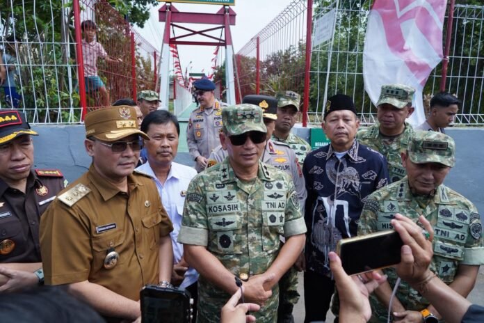 Cirebon, ––INDOTIPIKOR.COM-MEDIA LOYALIS TNI— Panglima Kodam III/Siliwangi Mayjen TNI Kosasih, S.E., M.M., didampingi Ketua Persit Kartika Chandra Kirana Daerah III/Siliwangi Ny. Riri Kosasih meresmikan jembatan gantung yang berada di wilayah Kriyan Barat RW 17, Kelurahan Pegambiran, Kota Cirebon, Senin (09/03/2026).