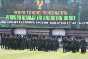 Jakarta ––INDOTIPIKOR.COM-MEDIA LOYALIS TNI— Panglima Kostrad, Letjen TNI Mohammad Fadjar, MPICT., menghadiri penerimaan Perwira Remaja (Paja) TNI Angkatan Darat Abituren Pendidikan Pertama Perwira (Dikmapa) Perwira Karier (PK) Reguler, Program Khusus, dan Cyber Tahun Anggaran 2026 yang dipimpin Wakil Kepala Staf Angkatan Darat (Wakasad) Letjen TNI Muhammad Saleh Mustafa di Lapangan Markas Besar Angkatan Darat (Mabesad), Jakarta, Jumat (13/3/2026).