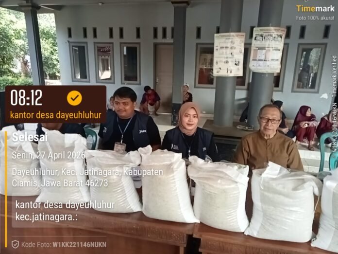 CIAMIS–INDOTIPIKOR.COM–Pemerintah Desa Dayeuhluhur, Kecamatan Jatinagara, menyalurkan bantuan pangan berupa 20 kilogram beras dan 4 liter minyak goreng kepada 977 Keluarga Penerima Manfaat (KPM) yang tersebar di lima dusun. Bantuan tersebut merupakan program dari Pemerintah Pusat melalui Dinas Sosial sebagai upaya membantu masyarakat dalam memenuhi kebutuhan pokok sehari-hari.