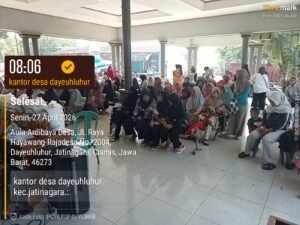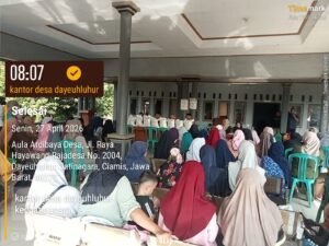 Penyaluran bantuan dilaksanakan selama 27 hingga 29 April 2026 bertempat di Aula Desa Dayeuhluhur, dengan pengaturan jadwal penerima secara bertahap guna menjaga ketertiban dan kelancaran proses distribusi. Seluruh penerima bantuan hadir sesuai jadwal yang telah ditentukan oleh pemerintah desa dengan membawa dokumen pendukung sebagai syarat pencairan bantuan.