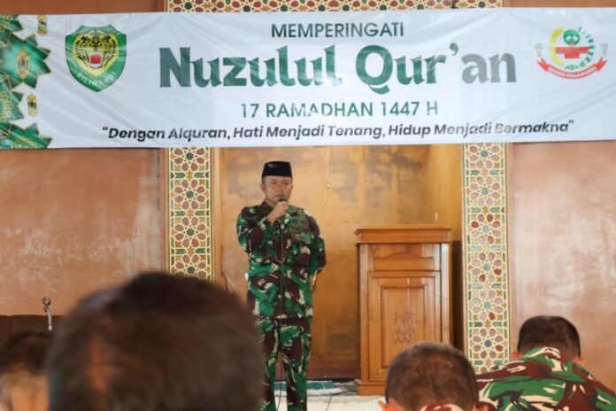 Peringatan yang mengusung tema “Dengan Al-Qur’an, Hati Menjadi Tenang, Hidup Menjadi Bermakna” tersebut dilaksanakan pada Senin, 9 Maret 2026, dan diikuti oleh para perwira, anggota, serta jajaran Koramil di lingkungan Kodim 0612/Tasikmalaya.