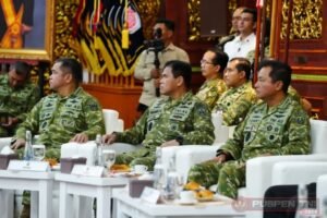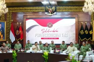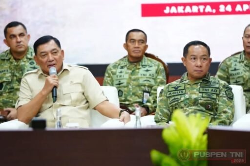 JAKARTA–INDOTIPIKOR.COM-MEDIA LOYALIS TNI—(Puspen TNI). Panglima TNI Jenderal TNI Agus Subiyanto bersama Wakil Panglima TNI Jenderal TNI Tandyo Budi R, Kepala Staf Angkatan Darat (Kasad) Jenderal TNI Maruli Simanjuntak, Kepala Staf Angkatan Laut (Kasal) Laksamana TNI Muhammad Ali serta Kepala Staf Angkatan Udara (Kasau) Marsekal TNI Mohamad Tonny Harjono, menghadiri acara Silaturahmi Purnawirawan TNI yang dipimpin Menteri Pertahanan RI Sjafrie Sjamsoeddin, bertempat di Aula Bhinneka Tunggal Ika, Kementerian Pertahanan RI, Jalan Medan Merdeka Barat, Jakarta Pusat, Jumat (24/4/2026).