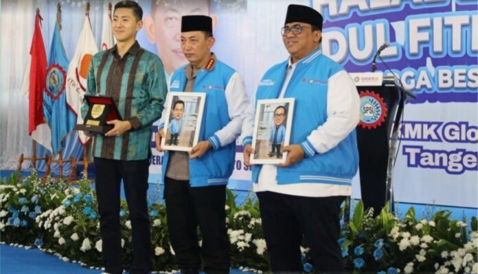 Tangerang ––INDOTIPIKOR.COM-MEDIA LOYALIS KORPS POLRI— Kapolri Jenderal Polisi Listyo Sigit Prabowo menghadiri kegiatan Halal Bihalal Idul Fitri 1447 H bersama Keluarga Besar KSPSI AGN di PT KMK Global Sports, Cikupa, Selasa (14/04).