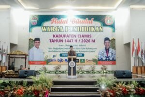 CIAMIS, —–MEDIA INDOTIPIKOR.COM—- Organisasi profesi guru yang tergabung dalam Persatuan Guru Republik Indonesia (PGRI) dinilai memiliki peran strategis dalam membangun kualitas pendidikan di daerah. Hal ini disampaikan Bupati Ciamis, Herdiat Sunarya, saat menghadiri acara Halal Bihalal PGRI Kabupaten Ciamis tahun 2026.