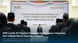 JAKARTA–INDOTIPIKOR.COM-MEDIA LOYALIS KPK RI—Seketaris Jendral KPK, Cahya H. Harefa melantik 87 Pejabat Fungsional, di gedung Merah Putih KPK. Cahya berpesan kepada tujuh penyidik tindak pidana korupsi yang baru dilantik agar menegakkan hukum secara objektif, akuntabel, serta berbasis teknologi informasi.