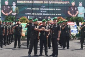 Tasikmalaya ––INDOTIPIKOR.COM-MEDIA LOYALIS TNI— Tongkat komando Komandan Distrik Militer (Dandim) 0612/Tasikmalaya resmi berpindah dari Letkol Arm Yan Octa Rombenanta, S.Sos kepada Letkol Czi M. Imvan Ibrahim, S.Sos., M.Han. Prosesi Serah Terima Jabatan (Sertijab) dilaksanakan di Markas Kodim (Makodim) 0612/Tasikmalaya, Jalan Otista Nomor 11, Kelurahan Empangsari, Kecamatan Tawang, Kota Tasikmalaya.