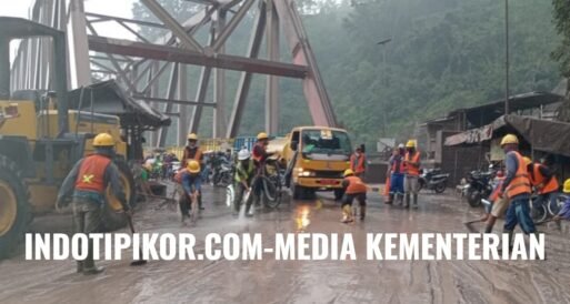 INDOTIPIKOR.COM–MEDIA LOYALIS KEMENTERIAN—Upaya Tanggap Darurat Kementerian PU dan stakeholder lain pada Bencana Erupsi Gunung Semeru, yakni melakukan pembersihan Jembatan Gladak Perak yang terkena debu vulkanik agar tetap dapat dilintasi kendaraan.